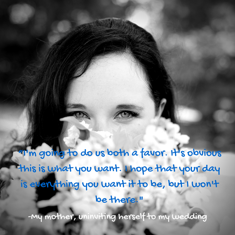 Aside from being hurtful, you took something that was mine to requite or not give — again. It was not your conclusion whether or not yous would be coming to my wedding, and it's ridiculous that yous ever idea it was.